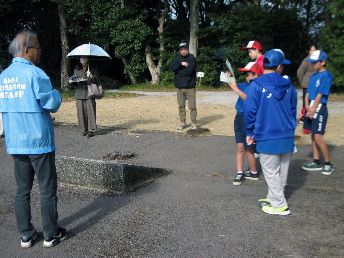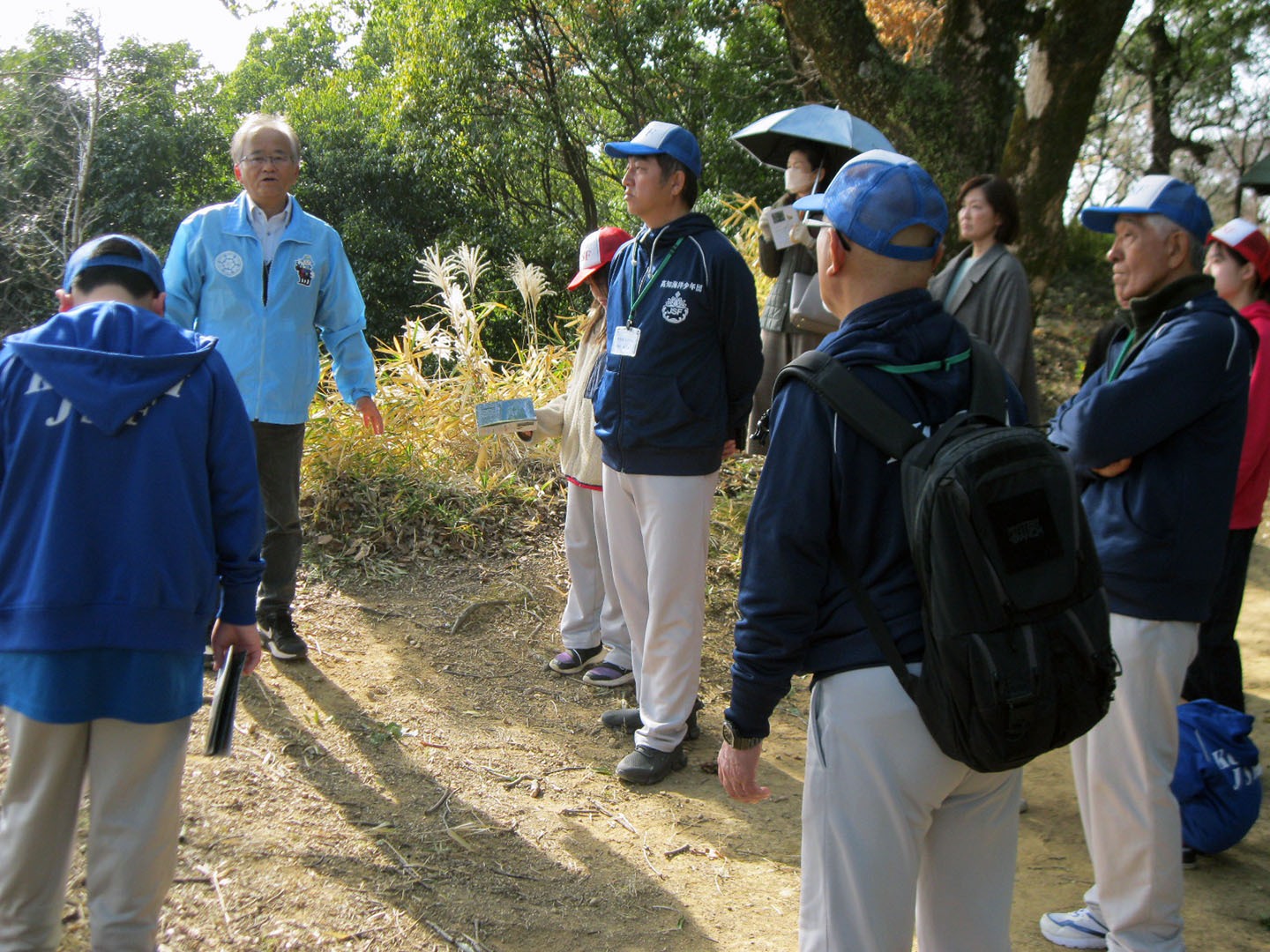 松田副館長からは歴史民俗資料館は、長曾我部氏が居城とした岡豊城跡に建っていることから資料館内や岡豊城跡での説明を分かりやすく、丁寧にして頂きました。資料館内では発掘調査で出土した資料、城跡では山の斜面を利用した横堀や土塁を利用した強固な守りを持つお城であったことを教えて頂きました。