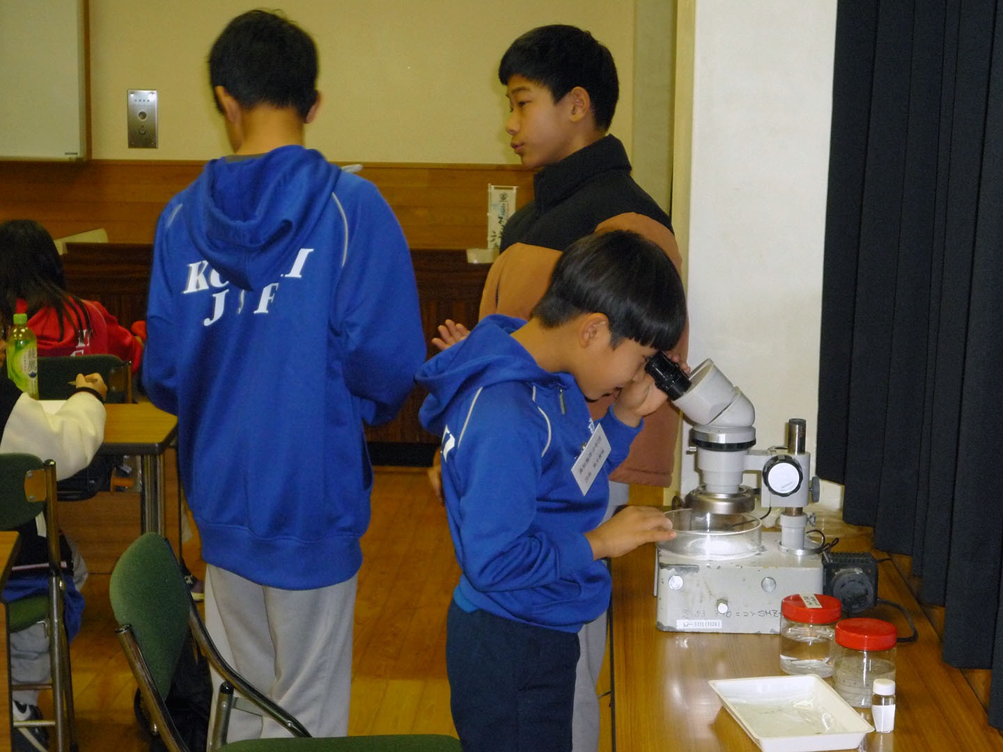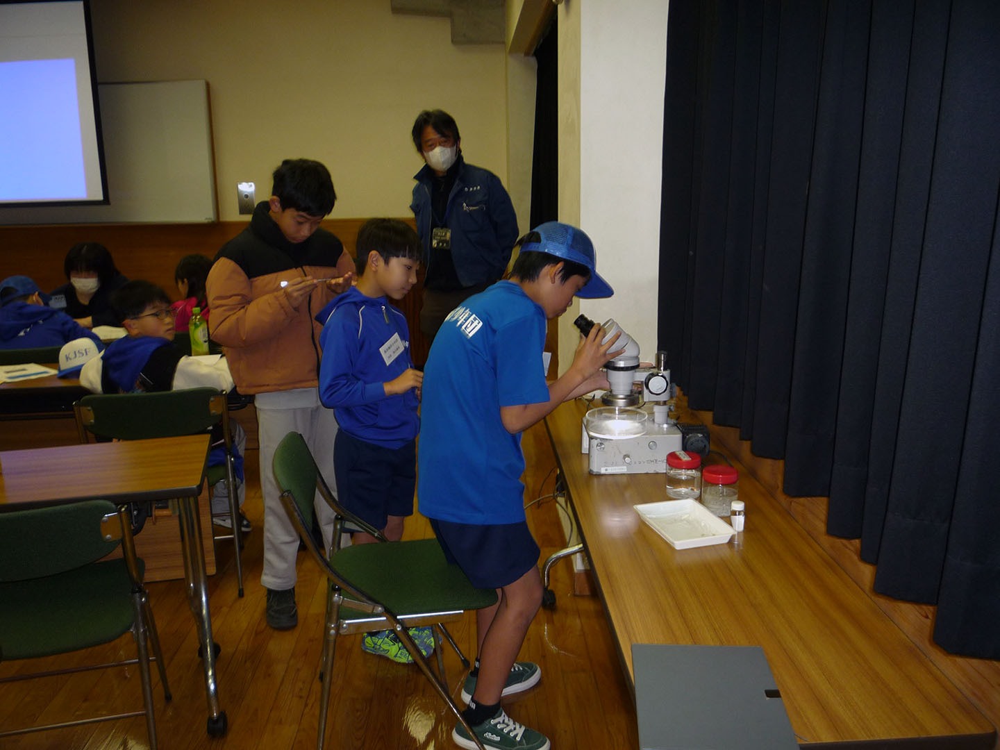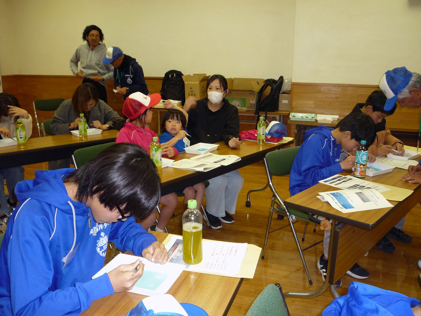 海洋研究者の大学や大学院での研究の面白さや、イワシシラスを捕獲する漁業漁法、イワシシラスは同じように見えても3種類があることを教えて頂きました。団員の中には、イワシシラスを食べない子もいることからイワシシラスを見ることが出来ていい経験になりました。